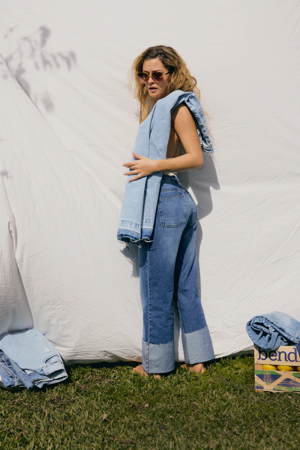 El Jean Marbella tiene un diseño moderno y versátil que se distingue por su corte straight wide y un detalle único: la botamanga doblada y cosida, que aporta un look descontracturado y actual.